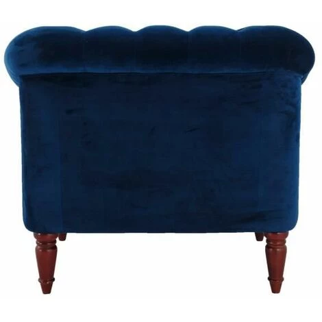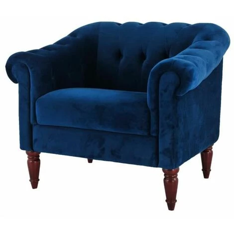 Fauteuil Chesterfield en velours, piétement en bois, coloris bleu pétrolNous ne livrons pas en Corse.