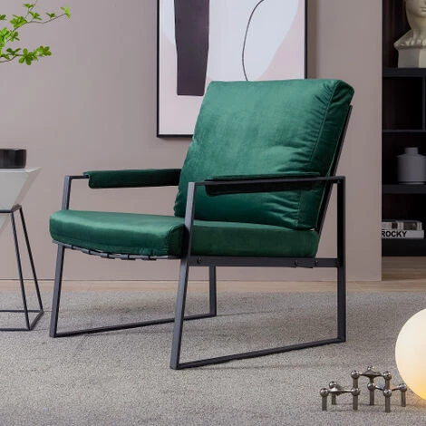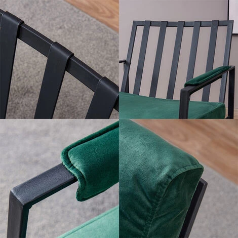 CONCEPTION CONFORTABLE: Ce fauteuil est exquis et unique. L’accoudoir en velours est lisse. 105 degres entre le coussin et le dossier, ce qui, conformement a l’angle de confort ergonomique, vous permet de vous sentir a l’aise lorsque vous lisez ou buvez. Le coussin en eponge rembourre et epaissi vous permet de vous sentir detendu et confortable sur ce meuble en metal moderne.