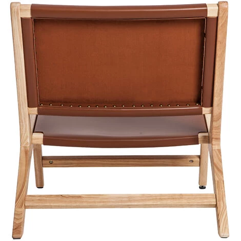 Sa structure en bois clair évoque la nature, le revêtement marron à l’aspect chaleureux crée une atmosphère réconfortante. Un design sobre et élégant qui invite à l’apaisement. Sous ses faux airs de coups de coeur ramenés de voyages, ce fauteuil apportera une touche authentique aux pièces de vie à l’ambiance ethnique chic.
