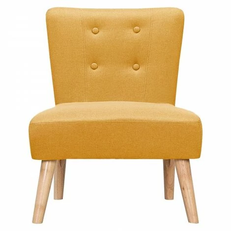 Plongez dans une vague de modernisme avec ce fauteuil Scandinave en Tissu jaune !Un mélange audacieux : des lignes rétro avec des matières modernes. Un design tout simplement… sublime !Le mélange des matières et des pieds bois lui donne tout son charme!Profitez d’une mousse dense qui saura vous maintenir parfaitement, même après une utilisation prolongée.Caractéristiques:Hauteur (cm) : 81Largeur (cm) : 61Profondeur (cm) : 66Revêtement : TissuDensité : Mousse HR 24kg/m3 + Mousse 50 kg/m3Suspension et mousse : Ressort métal et sangle élastiquePiètement : Bois
