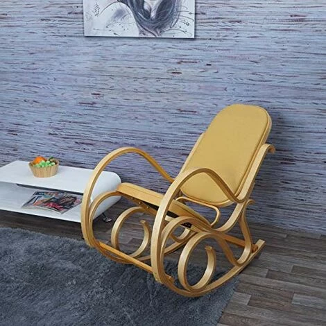 NOVA Chaise à Bascule Structure En Bois Clair Assis Dans Le Tissu De Design Classique Couleur : Jaune