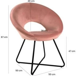 Baroni Home Fauteuil Rembourré Avec Dossier Coquillage En Velours Rose Poudre Avec Pieds En Fer Noir 64X67X77 Cm