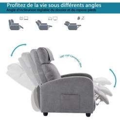 DNU Fauteuil De Relaxation Inclinable Avec Fonction De Massage Et Chaleur Légère, Gris Clair