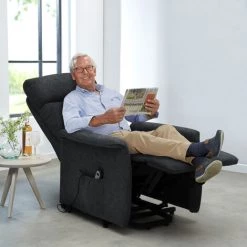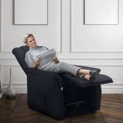 LE ROI DU RELAX Fauteuil à Bascule Inclinable Avec Repose-pieds En Tissu Relax Sofia | Couleur: Noir