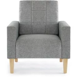 Fauteuil-Chaise Moderne En Tissu à Dossier Bas, Canapé 1 Place Avec Pieds, Structure En Bois Massif, Gris Clair-Meerveil