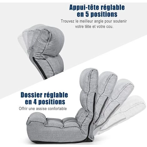 Le fauteuil bas paresseux met l’accent sur votre temps libre. Après une journée bien remplie, nos chaises de sol pliantes offrent une zone de confort où vous pouvez regarder une émission, lire un livre ou même méditer. Le dossier est réglable en 4 positions et l’appui-tête en 5 angles. Une variété d’options d’assise, et vous pouvez également le poser à plat pour vous allonger.