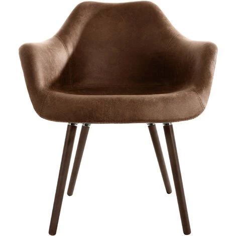 La chaise Anssen marron vieilli est un modèle unique et tendance qui comprend une coque spacieuse recouverte de tissu effet cuir ancien et montée sur un piètement en bois verni. Le tout est robuste, aqréable et parfaitement stable pour des moments de détente sans fausse note.