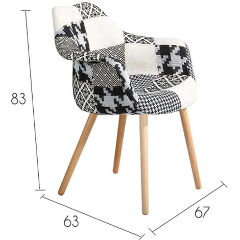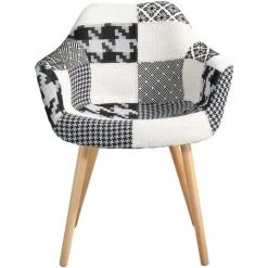 Chaise scandinave patchwork en tissu noir et blanc – Anssen –