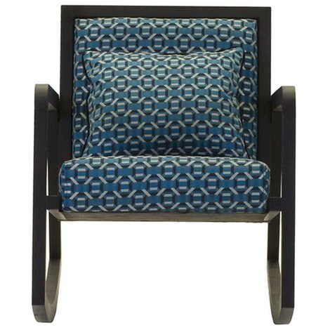 Emparez-vous de ce magnifique fauteuil au style Rocking chair. Craquez pour son look rétro subtilement mixé avec la modernité de sa structure en métal noir. Son imprimé bleu moderne apportera une touche de décoration contemporaine !