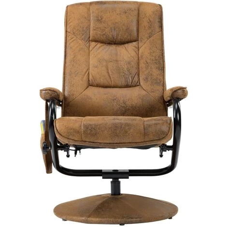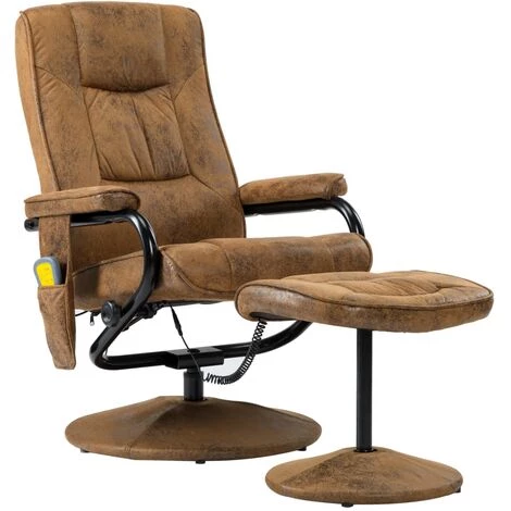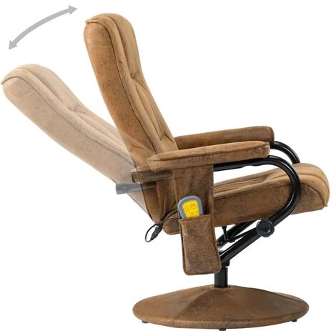Détendez-vous dans ce fauteuil de massage réglable, en similicuir daim de qualité avec repose-pied. Il offre des notes de luxe et de glamour qui seront le choix idéal pour vous détendre dans votre salon. Ce fauteuil de massage en similicuir daim, doté d’un repose-pied, allie style et fonctionnalité. L’ensemble dispose d’un cadre en métal et en bois, rempli de mousse haute densité et recouvert de similicuir de qualité pour un confort maximum. Le siège épais et le dossier moelleux sont très confortables. De plus, lorsque le dossier est incliné, vous pouvez poser vos pieds sur notre confortable repose-pied. Avec un massage en 8 points, un dossier chauffant et une télécommande incluse, vous pouvez rapidement oublier le stress de la vie quotidienne. Ce luxueux fauteuil pivotant est le meilleur choix pour un bureau à domicile ou une salle d’étude. Faites l’expérience d’un confort d’assise optimal sur cet ensemble confortable de fauteuil inclinable et de repose-pied !