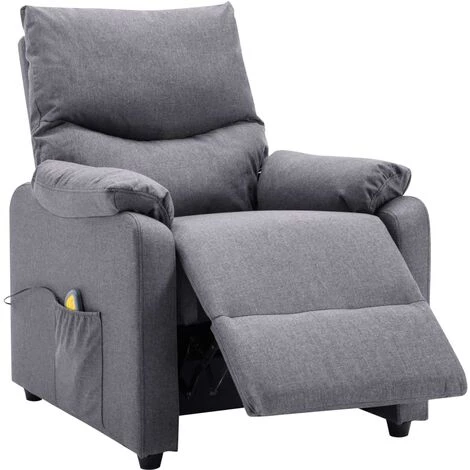 Ce fauteuil de massage est conçu de manière ergonomique pour une détente complète après une journée bien remplie ! Détendez-vous et profitez de votre temps libre dans ce fauteuil confortable ! Alliant style moderne et fonctionnalité, la chaise inclinable s’adapte à n’importe quel décor intérieur. Recouvert de tissu résistant à l’usure et soutenu par un cadre en métal, le fauteuil inclinable est extrêmement durable. Avec le siège, le dossier et les accoudoirs bien rembourrés, le fauteuil est très confortable. Son dossier et son repose-pied peuvent être facilement ajustés pour offrir un siège confortable ou une position couchée comme vous le souhaitez. De plus, avec un massage en 6 points, vous pouvez rapidement oublier le stress de la vie quotidienne. Une télécommande est incluse.