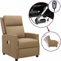 Asseyez-vous et détendez-vous dans ce fauteuil inclinable de massage électrique très confortable ! Fonction d’inclinaison : ce fauteuil inclinable est équipé d’un moteur électrique, qui vous permet de régler facilement le dossier et le repose-pied vers l’avant ou l’arrière à l’aide d’une simple commande.Matériau durable : le similicuir de qualité supérieure est un matériau très durable. Il est résistant aux taches, ce qui le rend facile à nettoyer avec un chiffon humide. La surface lisse donne également un aspect luxueux et la beauté du cuir véritable.Fonction de massage : les 6 points de massage inclus vous permettent de profiter d’un massage mieux ciblé.Cadre robuste et stable : le cadre en métal assure robustesse et stabilité. Remarque :Chaque produit est livré avec un manuel de montage dans la boîte pour un montage facile.