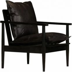Ce fauteuil somptueux sera un endroit confortable pour bavarder, lire, regarder la télévision ou simplement se détendre. Il créera une ambiance légèrement rétro et chaleureuse dans votre salon. Le fauteuil est fait de bois d’acacia massif qui a reçu une finition teintée noire par polissage, peinture et laquage pour lui donner un aspect raffiné. Cette chaise est recouverte avec du cuir de chèvre souple et rembourrée avec de la mousse épaisse pour une excellente expérience d’assise. Le nettoyage avec un chiffon humide est facile. Il est facile à assembler.