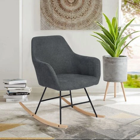 Ce fauteuil de style rocking chair est très confortable grâce à son rembourrage moelleux sur l’assise, et ses pieds à bascule. Inspiré du style scandinave, ce siège épuré apportera la touche cosy à l’endroit que vous lui choisirez.