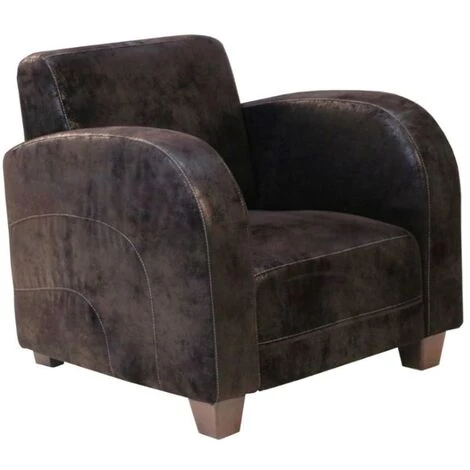 Canapé et fauteuil club en microfibre effet cuir vieilli MADIE