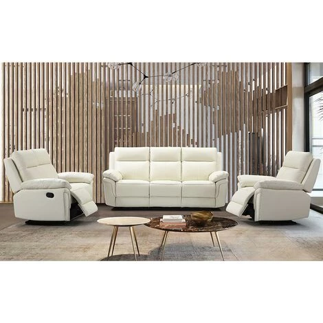 Mécanisme relax manuel : 2 assises relax pour les canapés, 1 assise relax pour le fauteuil.
