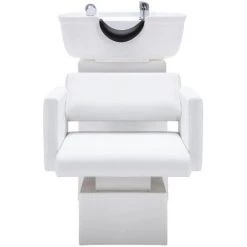 Cette chaise de salon de lavage est faite de similicuir et remplie de mousse, ce qui la rend anti-déchirure et confortable à incliner. Le cadre en bois avec de larges accoudoirs offre une grande stabilité à cette chaise. De plus, la conception de l’appui-nuque souple est parfaitement confortable pour votre cou en position couchée. Le bol de shampoing profond est conçu pour éviter les éclaboussures d’eau. La crépine sous le bol de shampoing peut empêcher le tuyau d’eau de se bloquer par les cheveux ou autre chose. Faites l’expérience d’un merveilleux shampoing avec cette chaise de salon !