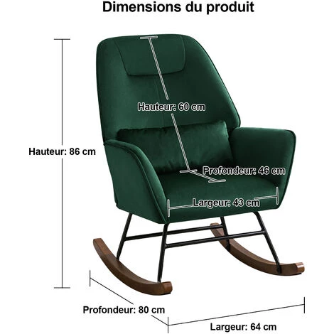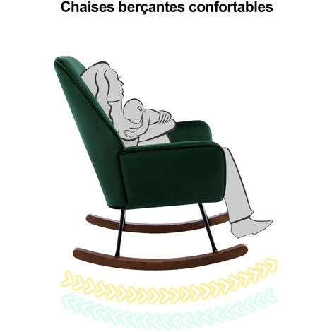 [DESIGNE ERGONOMIQUE] Cette chaise à bascule en velours conçue avec deux accoudoirs pour libérer vos mains. Le dossier complet incurvé épouse mieux la forme de la colonne vertébrale du corps humain et soutient bien le dos. Il vous permet de bien soulager la fatigue corporelle lors de l’allaitement, de la lecture et du repos.