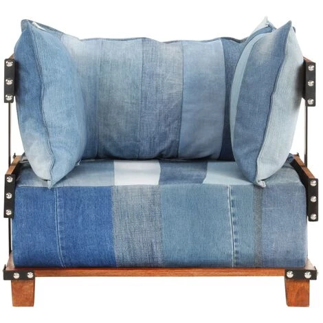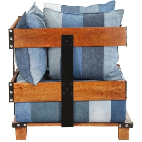 Ce canapé simple sera un excellent complément à votre espace de vie. Le cadre en bois de manguier massif et le tissu en jean patchwork rendent ce canapé non seulement solide, mais aussi esthétique. De plus, les coussins inclus et le design ergonomique rendent le fauteuil extrêmement confortable et en feront votre endroit préféré pour vous détendre.