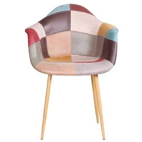 Fauteuil style patchwork modèle Oraz avec pieds métal effet bois. Ce fauteuil très confortable apportera une touche originale et tendance à votre intérieur.